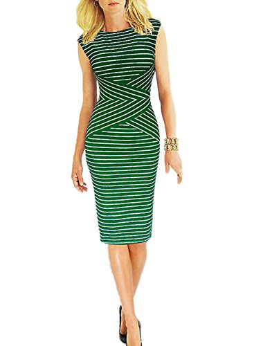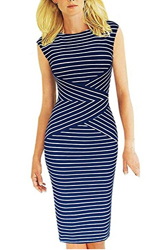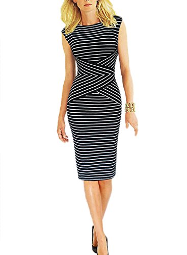 Viwenni Women's Summer Striped Sleeveless Wear to Work Casual Party Pencil Dress