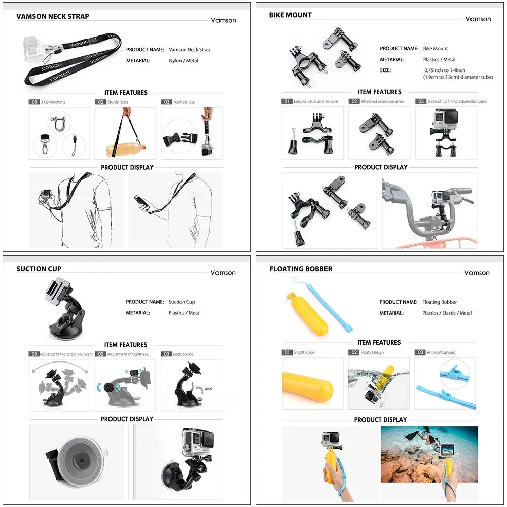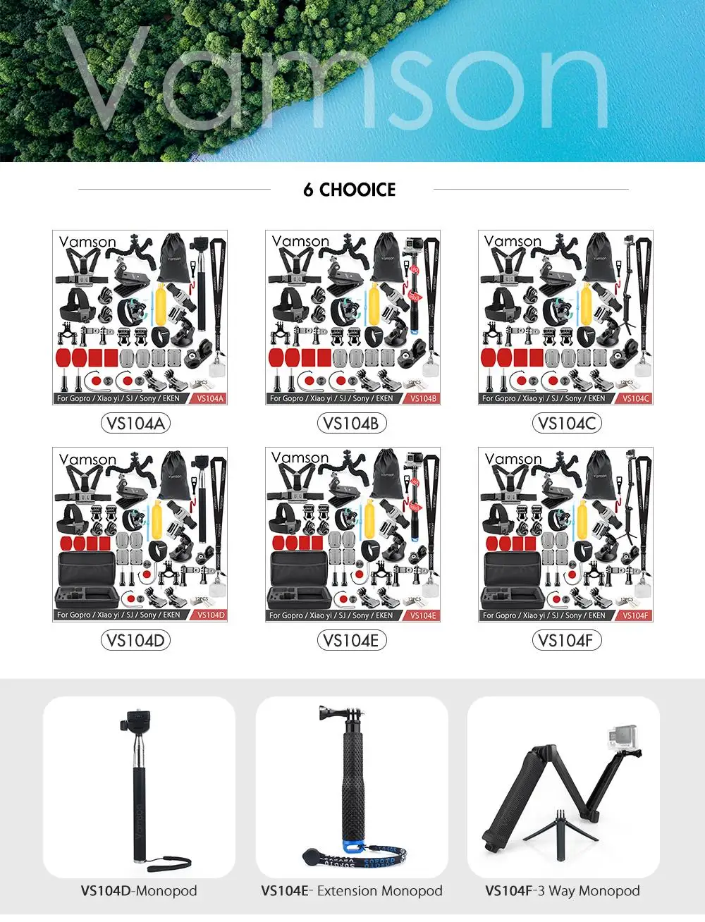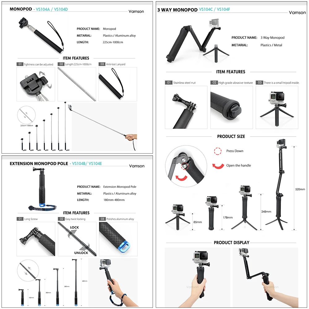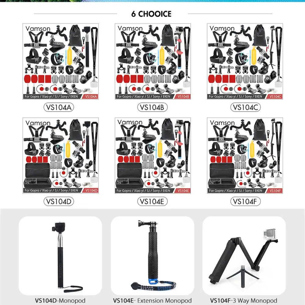 Compatible Action Camera Brand:SONY,EKEN,SOOCOO,GoPro,Sjcam