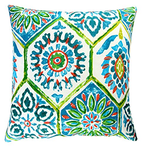 Artisan Pillows Outdoor Lime Green and Blue Modern Abstract Geometric Caribbean Beach Style 18x18 throw pillow With Poly Insert Set of 2