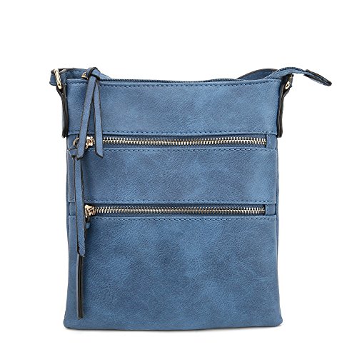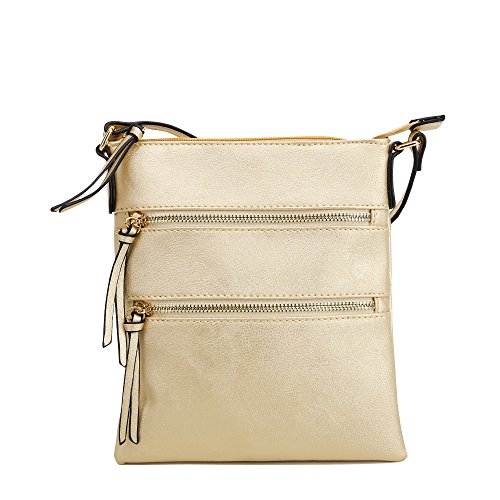 Lily Jane's Essential Cross Body Bag has an adjustable shoulder strap (23" to 27" drop). There are 5 total compartments which includes 1 main zippered, 2 front zippered, 1 zippered inside, and 1 open inside compartments. Crossbody bag is made of faux leather with fabric lining & gold tone hardware. Can fit mini tablets such as iPad Mini 4 / Galaxy Tab 7 series / Amazon Fire tablets & smartphones such as iPhone 7 / 7 Plus / Galaxy S8 / S8+ / Note5.Feature