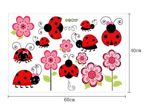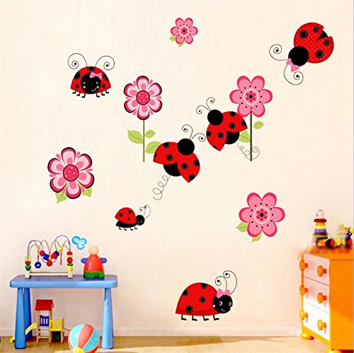 -. Title : Ladybug wall decal Ladybug Wall sticker Cute Wall Stickers Colorful Flower Ladybug Wall Decals Home decoration Kids Room Decals Bedroom Decor