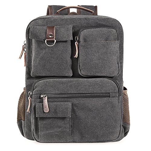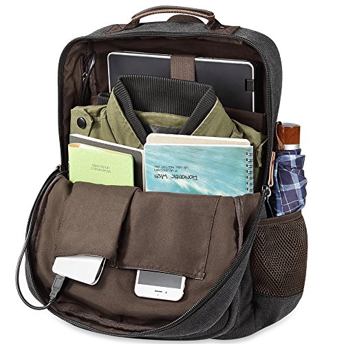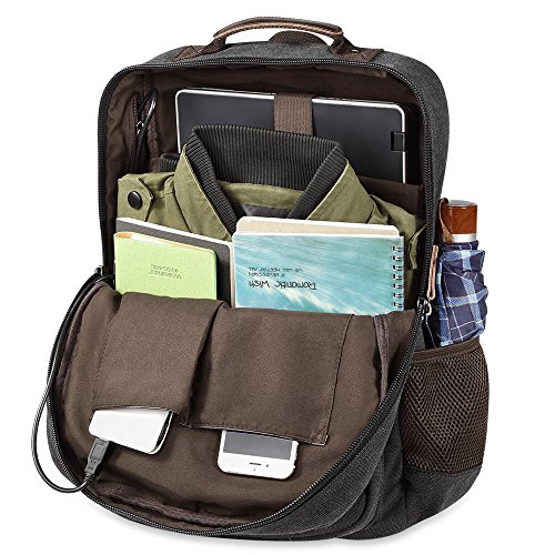 -. Feature : Material:Backpack for men with usb charging port is made of sturdy and durable washing canvas and cotton lining. / Laptop backpack perfect for school/travel/hiking/weekend/college.Please allow little color difference due to different camera or light environment. / Large Size:backpack with dimension L33 * H44 * W12cm(13*17.3*4.7inch).Padded laptop pocket fits 15.6 inch laptop,and will protect your computer well. / Innovative Design:External Micro-USB with set-in charging cable make the charging more convenient.Comfortable adjustable padded straps,leather zipper pulls and grab top handle,padded bottom,smooth zipper.Rucksack will fit in anywhere the day takes you. / Structure&Package:roomy vintage backpack,include main compartment with laptop sleeve,two multi-function pockets;three front zipper pockets,two front magnetic buckle pockets,two side pouches for umbrella or water; additional inside pockets for certificates and pen.