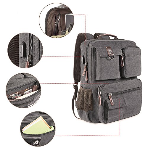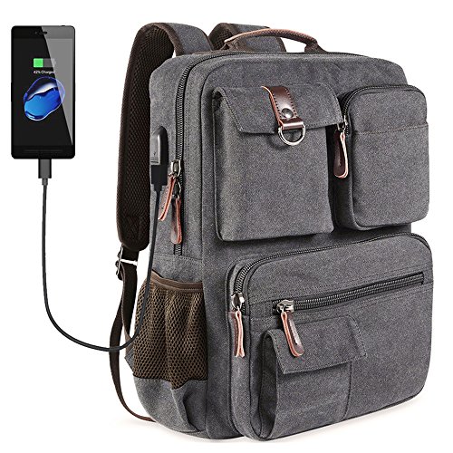 -. Title : School Backpack Vintage Canvas Laptop Backpacks Men Women Bookbags with USB Charging Port