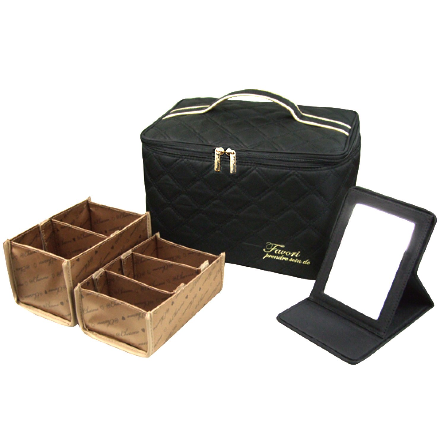 The subdivision cases can be used either in stacked in a make-up box or in side by side.