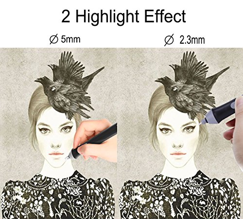 - 2 Eraser Tip Options & Refillable - This automatic eraser has 2 eraser tip options. Thin and thick erasers create different highlights. 2.3mm eraser is used to erase small areas and 5mm eraser is to erase bigger areas. Easy to remove and replace.