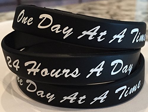 Set of 3 Black One Day At A Time / 24 Hours A Day Silicone Wrist Bands 2.5" Wristband Bracelet AA NA