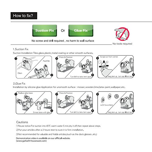 - Feature : ❶No screw and drill required,no harm to wall surface. / ❷Bearing capacity:over 5kg per suction / ❸Material:Stainless steel, ABS+Plastic / ❹Make your house more fashion / ❺Nice looking & durable using