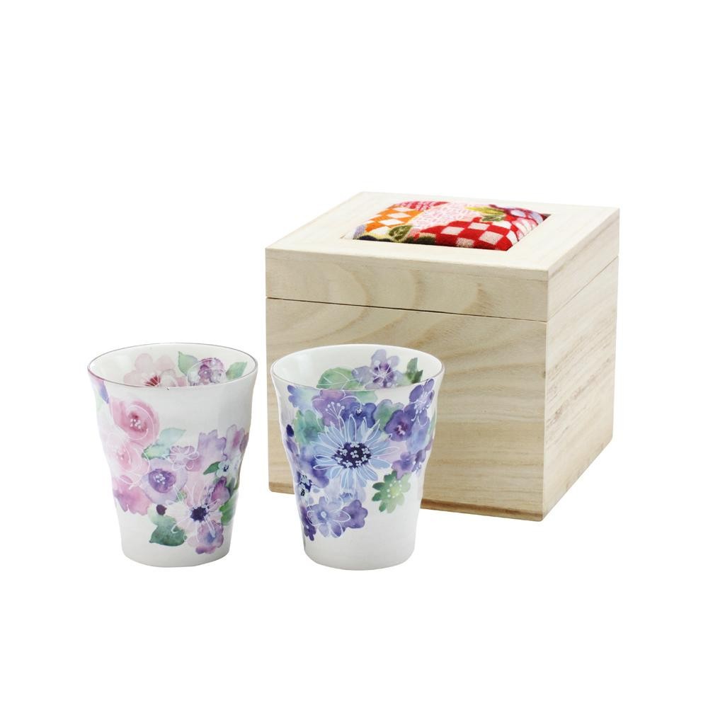 大小様々な花が織成す、上品な花柄のペアフリーカップ。大切な方へのギフトにも最適です。 |