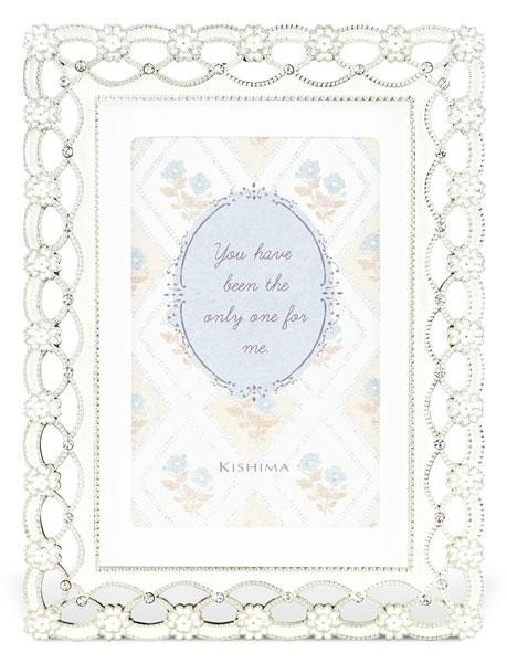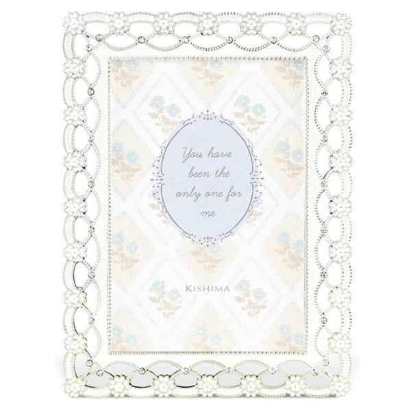 | まるで花嫁のブーケのような、純白のお花で縁取られたフォトフレームです。ふんわりとした可憐なお花とレース模様が、優しく上品な雰囲気。光を受けてキラキラと輝く美しい質感が、写真をより華やかに彩ります。 |