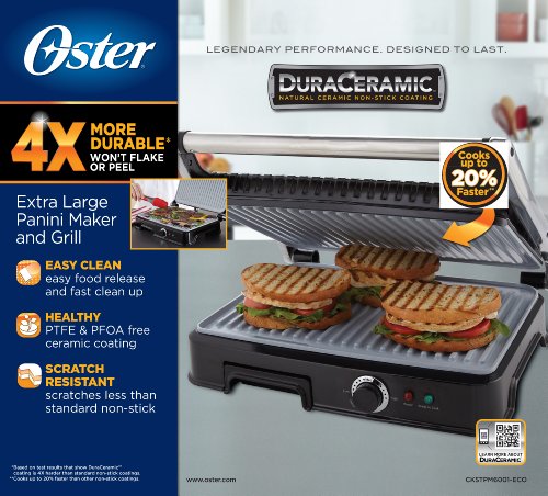 [해외]Oster 오스타 CKSTPM6001-ECO Extra Large 듀라세라믹크 파니니메이카&인도어 그릴 【병행수입품】