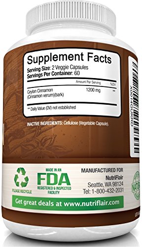 -. Title : NutriFlair Ceylon Cinnamon 1200 Milligrams per Serving, 120 Capsules
