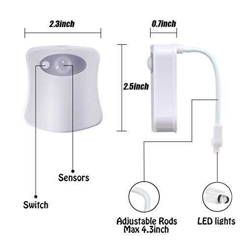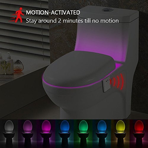 KINGSO LED Toilet Light Sensor Motion Activated Glow Toilet Bowl Light Up Sensing Toilet Seat Night light Inside Bathroom Washroom 8 Color