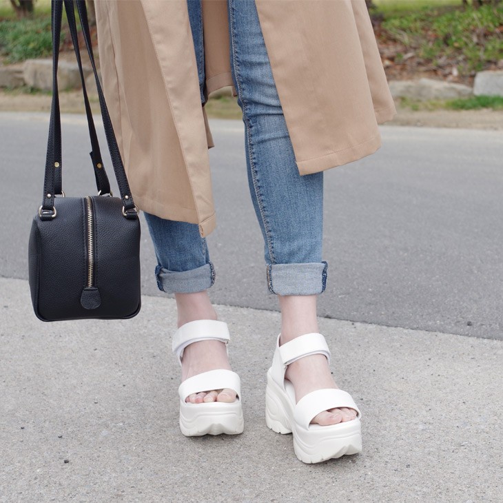 前のストラップも幅きつくなく、長さもちょうどぴったりでした。マジックテープで調節でき楽に履けます。 |