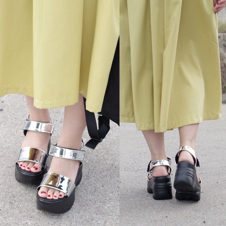 前ストラップがだいぶゆったりしていますが足首がホールドされているので脱げずに履けます。全体的にゆったりとした履き心地です。 |