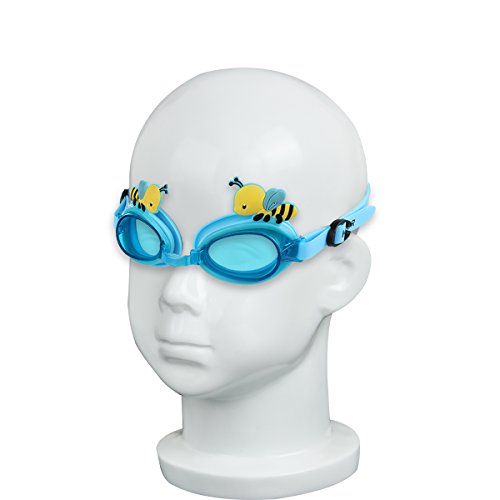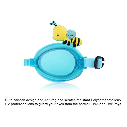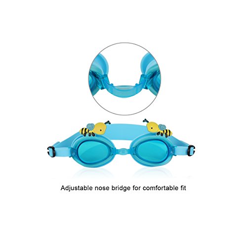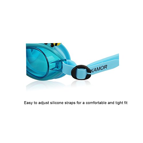 Kamor® #6 Kid Swimming Goggles - Toddler Swim mask with cute cartoon image little bees - UV Protection, Anti-fog, Blue Lenses - Adjustable buckle, Flexible nose bridge - Suitable for Boys & Girls