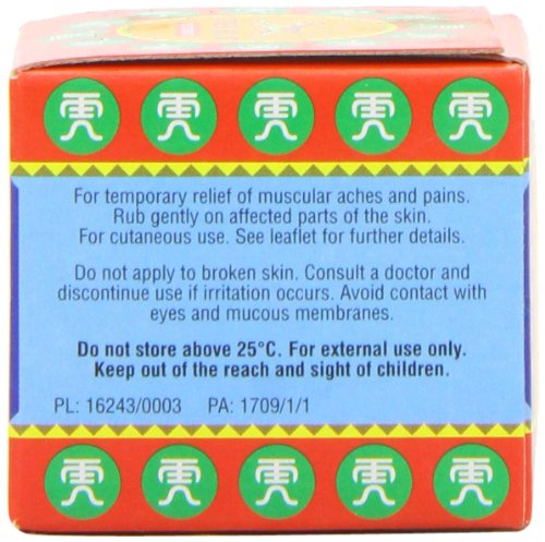 -. Binding : Health and Beauty -. Brand : Tiger Balm -. EAN : 5027659090379 -. Feature : It can be used during warm up before exercise or to ease soreness after working out / Warm relief for muscle pains / Can be used in itching due to insect bites / Quick and effective / Fast acting pain relief properties -. IsAdultProduct : 0 -. Label : TIGER BALM -. Manufacturer : TIGER BALM -. Model : TBM020 -. MPN : TBM020 -. PackageQuantity : 1 -. PartNumber : TBM020 -. ProductGroup : Health and Beauty -. ProductTypeName : HEALTH_PERSONAL_CARE -. Publisher : TIGER BALM -. Size : 19g -. Studio : TIGER BALM -. Title : Tiger Balm Red 19g