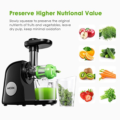 ✔ Higher Nutrional Value - As a masticating juicer, the auger spins at 80 RPM that preserves the vitamins, enzymes, minerals, trace minerals and nutrients from being destroyed as opposed to centrifugal juicers. Keep minimal Oxidation, low heat build-up, less foaming and no clogging.