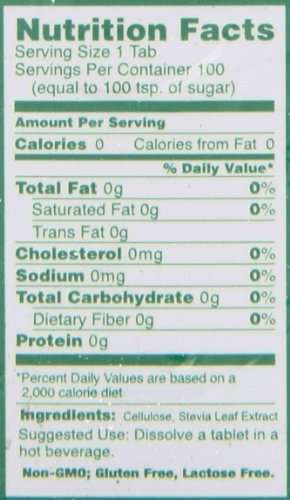 - Feature : quickly dissolves in hot liquid / 1 tab equals 1 teaspoon of sugar in sweetness / Safe for diabetics / Zero calories and zero carbs / 100 tabs per container