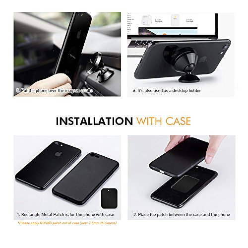 Easy installation: This Air vent universal smartphone magnetic car mount holder is 10 times easier to use than any other magnetic car mount holder due to its simple and complementary design. It has a sturdy rubber base and a powerful magnetic head for holding smartphones. Car Mount iPhone 6, Car mount iphone 6 plus, Magnetic Car mount holder