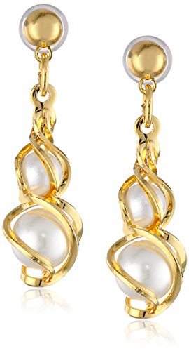 1928 Jewelry Gold Shell and Pearl Drop Earrings
