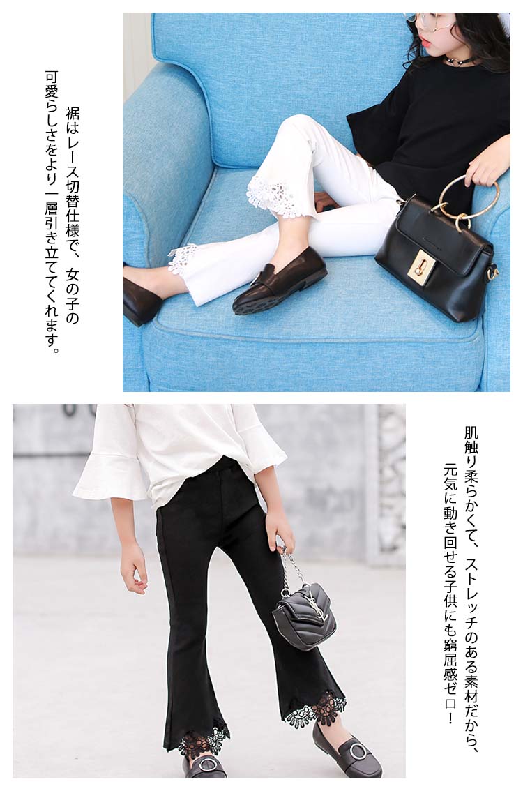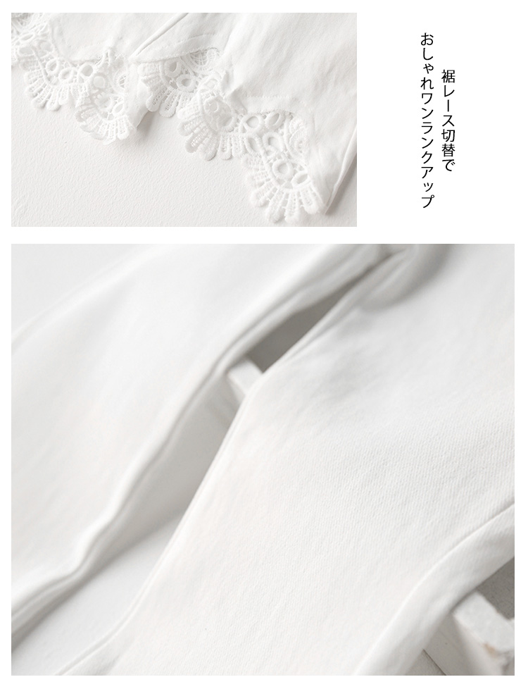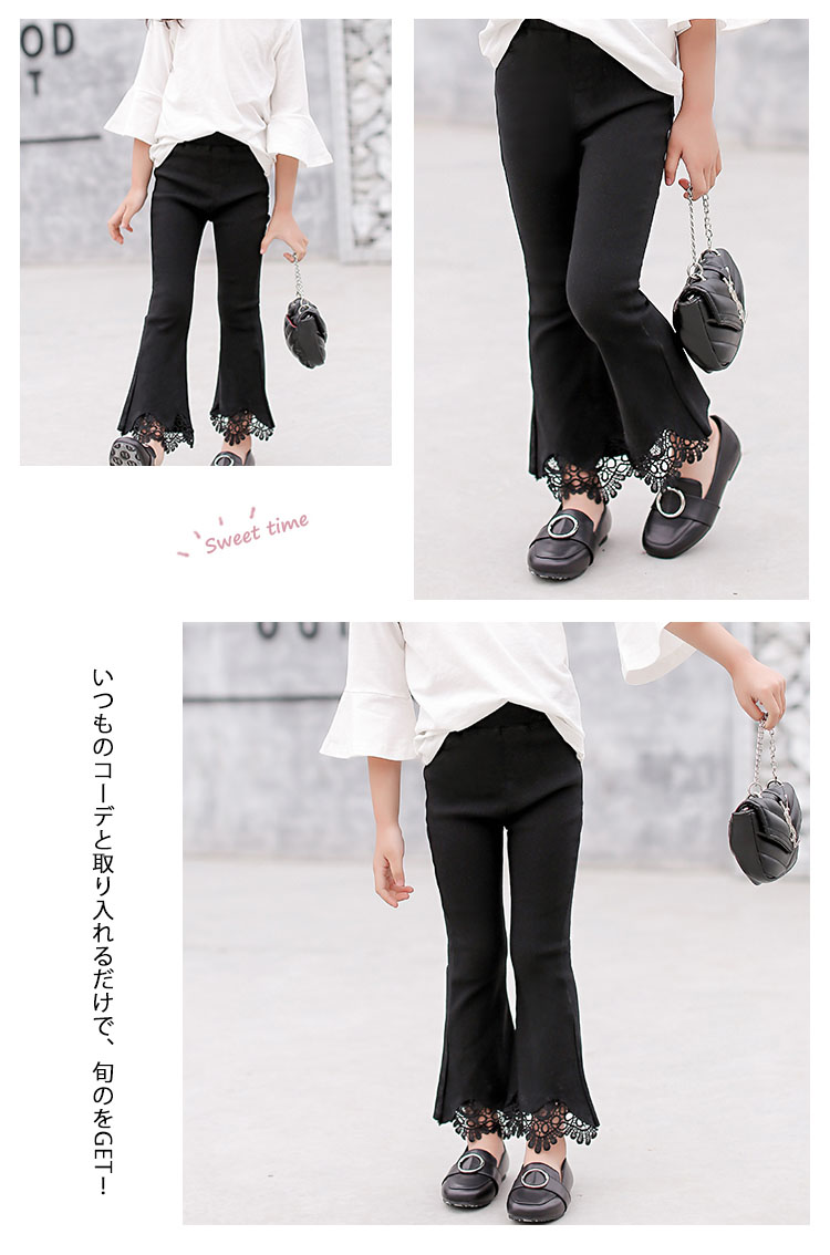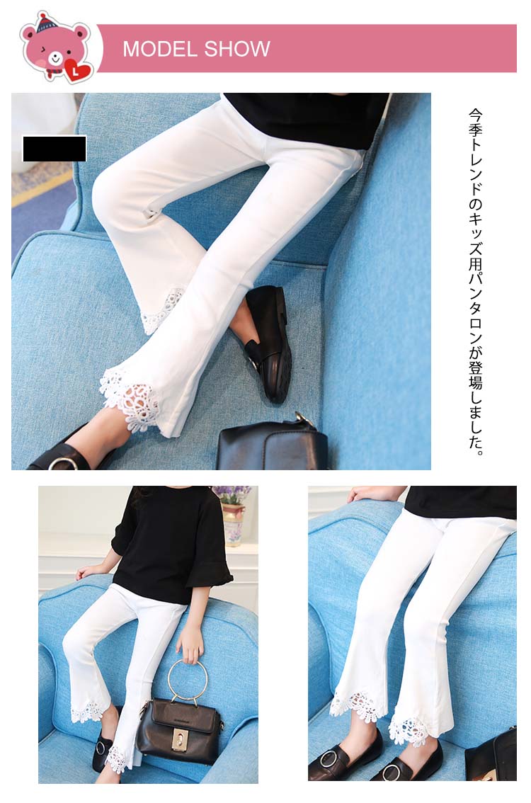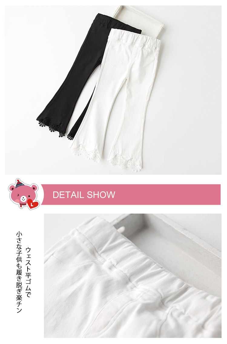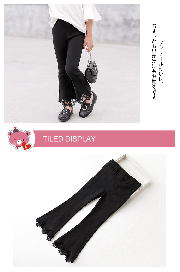 | 今季トレンドのキッズ用パンタロンが登場しました。裾はレース切替仕様で、女の子の可愛らしさをより一層引き立ててくれます。肌触り柔らかくて、ストレッチのある素材だから、元気に動き回せる子供にも窮屈感ゼロ!いつものコーデと取り入れるだけで、旬のをGET!ディテール使いは、ちょっとお出かけにもお勧めです。 | |