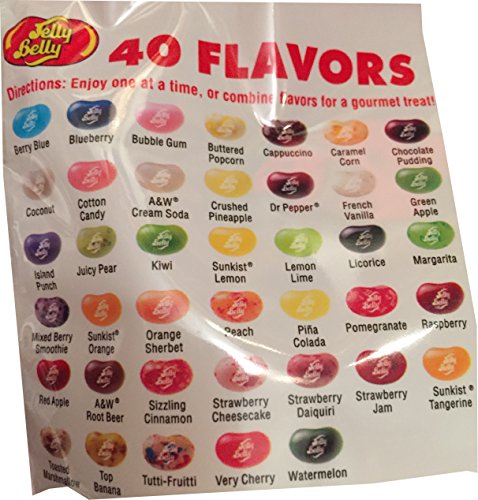 -. Feature : 1 - 9.8 oz Resealable Stand Up Pouch of Jelly Belly 40 Assorted Jelly Bean Flavors / Jelly Belly Assorted jelly beans in 9.8 oz bag. 40 flavors. Perfect present for candy lovers. Convenient size bag! / All Jelly Belly jelly beans are OU Kosher, gluten free, peanut free, dairy free, fat free and vegetarian friendly. / Made in USA