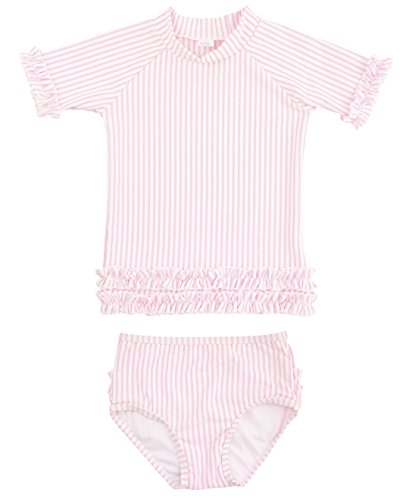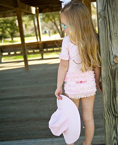 This pretty pink seersucker rash guard will keep her safe in the sun with UPF 50+ protection. Complete the look with a pair of Wayfarer Sunglasses.