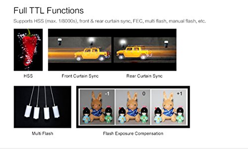 Support for TTL autoflash, manual flash, multi flash, 1/8000s high speed sync[Only Olympus Cameras], flash exposure compensation, flash exposure lock, manual focus assist, rear curtain sync etc. With a compact body, 2.4G wireless transmission and 30 meters further transmission