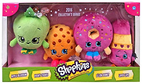 -. Feature : 4 Shopkins Plush Toy Set / 2016 Collector's Series / Apple Blossom, Kooky Cookie, D'Lish Donut, Lippy Lops / Adorable and Favorite Characters in Super Soft 6" Plush