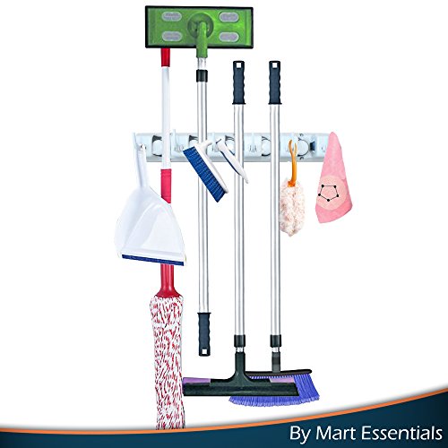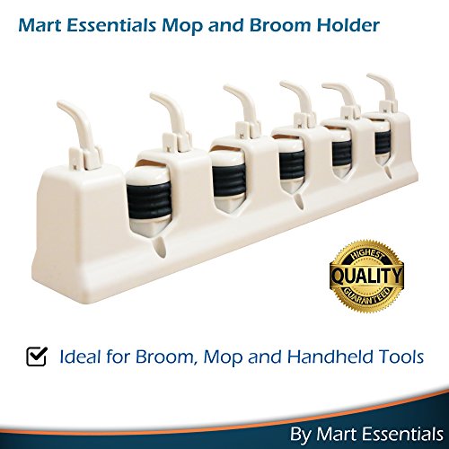 5 SLIP RESISTANT HANGING SLOTS: Stop wasting your money on cheaply made broom and mop hangers which fail to firmly hold your tools. The Mart Essentials broom holder rack has 5 slots which feature anti-slip rubber and which can securely hold your household and garden tools.