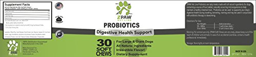 ZPAW Vet Line Probiotics contain live good bacteria and yeasts that support and supplement your dog's nutrition, poor intestinal health and diarrhea. With all natural digestive enzymes that treat and prevent Diarrhea, Digestion, Gas, Cramping, Bad Breath, Ease GI upset, Restore gut flora, Boost immune function, Liver disease.