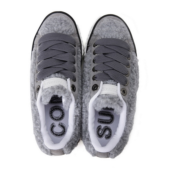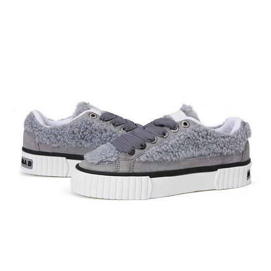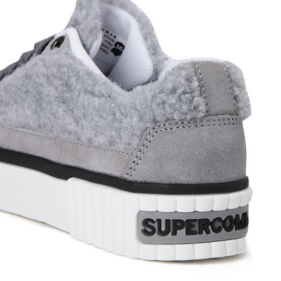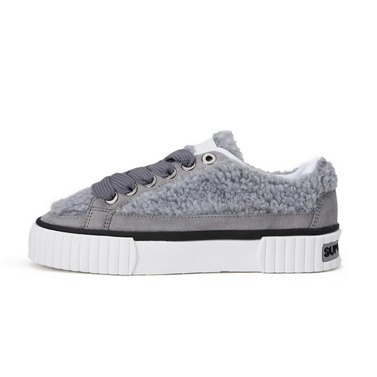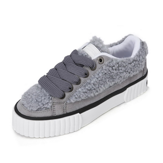 - 부클사와 인조가죽 믹스 디자인의 여성 스니커즈.