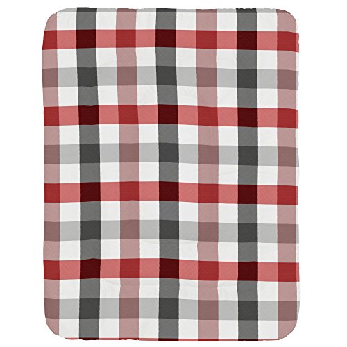 Studio : Carousel Designs Publisher : Carousel Designs Binding : Baby Product Product Description Comforter in Red and Onyx Buffalo Check Lullaby and goodnight! Our soft and cozy box-quilted comforter will keep your baby toasty warm on a chilly night, and makes for a great tummy-time mat by day. Measures approximately 36" wide by 46" long. Our crib comforter batting is made from recyclable hypoallergenic polyester fiberfill. 0
