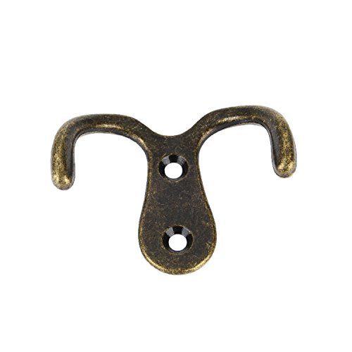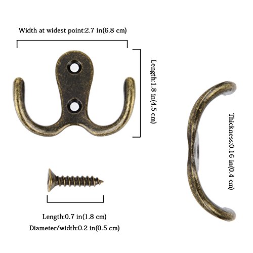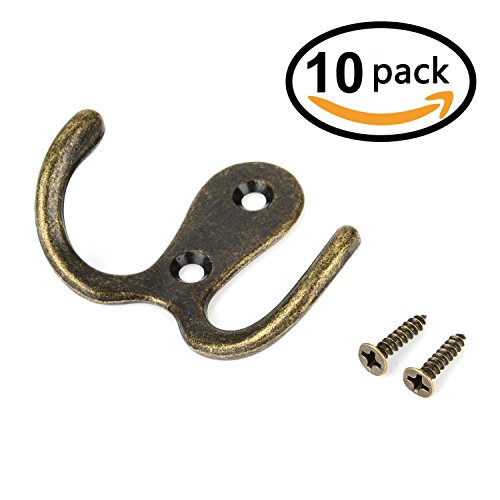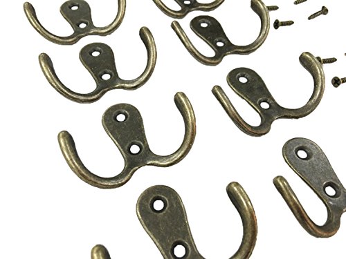 Double Prong Robe Hooks - 10 Pack of Rustic Hooks Retro Cloth Hanger Includes Screws - Heavy Duty Decorative