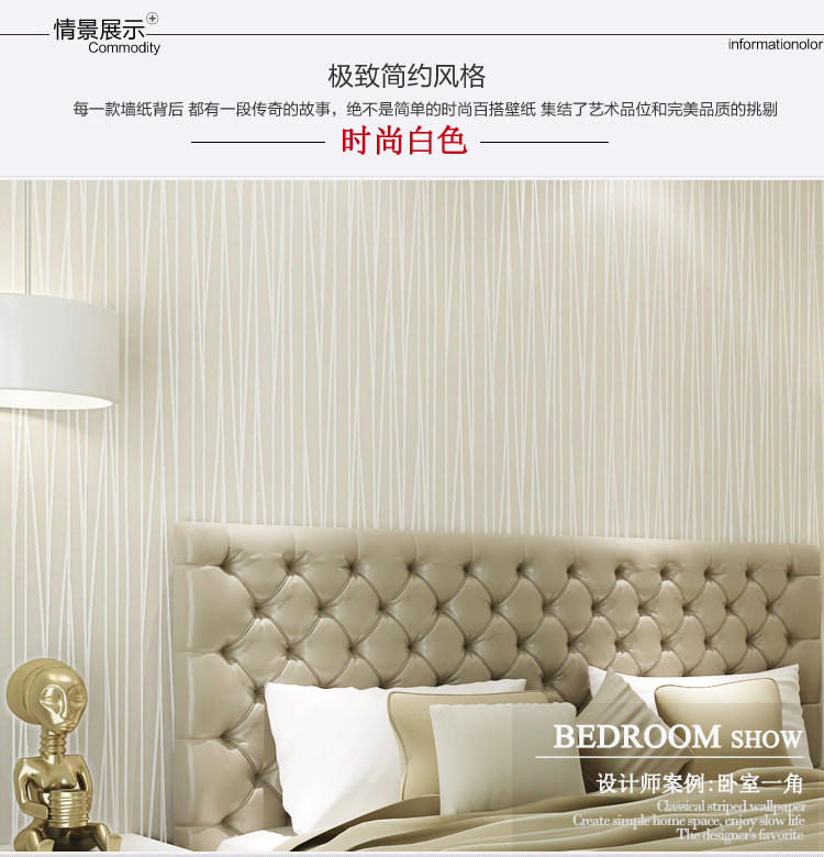 The products are divided into three kinds of material, non-woven special section. Non-woven upgraded version, woven microfiber silk models, three materials can be used for home improvement. Brand: Ba Beinuo than wallpaper Each roll width (m): 0.53m Roll length (m): 10m Denominated: Volume 1 Material: Non-woven, non-adhesive (need to purchase glue) Style: simple and modern Surface layer process: embossed Denominated: Volume Wallpaper Size: 5.3㎡ / roll