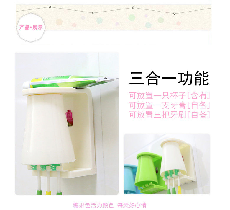 介绍:超实用的一款洗漱套装,集牙刷架、牙膏架、洗漱杯于一