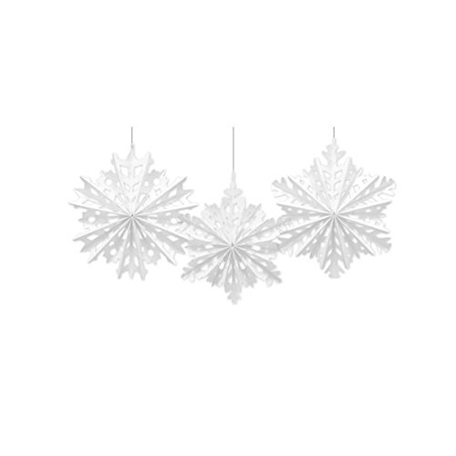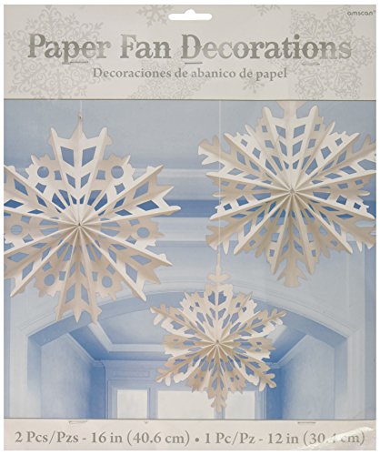 Amscan Winter Wonderland Christmas Snowflake Paper Fan Hanging Party Decoration (3 Piece), White, One Size