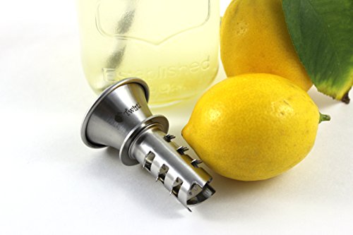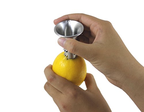 -. Feature : ELEGANT AND FUN DESIGN: Twist! Lemon Squeezer is designed for extracting citrus juice naturally by squeezing the citrus, and not by squeezing a handle. Featuring a serrated funnel casing that tears the pulp for extracting juice, the juice is drained into the funnel outlet for pouring without the messy spilling or splattering. / EFFICIENT AND USER FRIENDLY: Without the need to squeeze any pliers-like handle, Twist! Lemon Squeezer is easy on the arthritic hands and user friendly for smaller hands. It is easy to control and there are no parts to break.While holding the lemon uP.R.Ight, gently twist the pointy end of the lemon squeezer into the top of the lemon. The juice will flow into the funnel for pouring. If you want more juice, squeeze the lemon and more juice will drain into the funnel for pouring. / EASY CARE: After use, rinse thoroughly with care and wipe or air dry. / 18/8 STAINLESS STEEL: The lemon and lime juicer is made of high grade 18/8 stainless steel so it will not corrode or rust over time. / A unique and useful gadget gift for the lemon water drinker or the kitchen gadget person in your life!