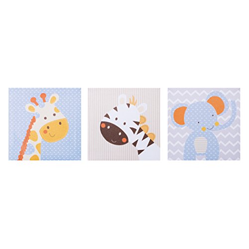 -. Title : Trend Lab Jungle Fun Canvas Wall Art Pack, Blue/Yellow/Brown/Gray