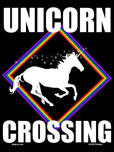 Magical Unicorn Crossing 9 inch x 12 inch Metal Aluminum Novelty Sign Decor with Rainbow Colors for Girls Room - Made in the USA