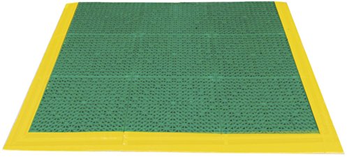 Durable Corporation Plastic Cushion Tile Eye Wash Station Mat, 26-1/2" Width x 29" Length x 3/4" Thickness, Green with Yellow