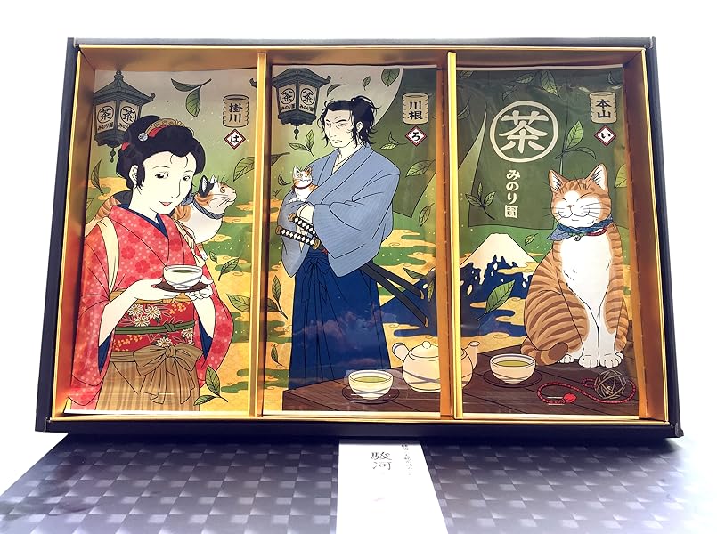 掛川茶(茶屋娘と猫)/川根茶(猫侍)/本山茶(看板猫)