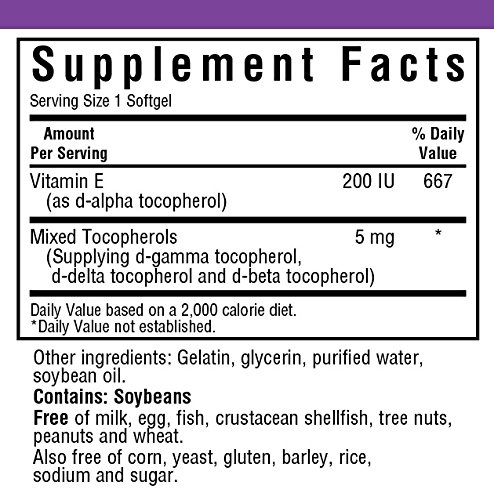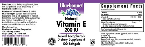 Bluebonnet's natural vitamin e mixed soft gels provide the popular, natural d-alpha tocopherol with a full spectrum of natural tocopherol isomers (beta, delta and gamma) in a base of vegetable oil (i.e., soy). Available in easy-to-swallow soft gels for maximum assimilation and absorption. Vitamin e is a powerful, fat-soluble antioxidant that helps protect cell membranes against damage caused by free radicals and prevents the oxidation of ldl cholesterol. It is necessary for the structural and functional maintenance of skeletal, cardiac, and smooth muscle. It also assists in the formation of red blood cells and helps to maintain stores of vitamins a and k.Feature