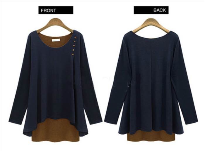 ●商品の特徴・肩部分にフェイクボタンを施した、レイヤード風カットチュニック。・とても柔らかく伸縮性の良いカット生地を使用し、着心地はとっても楽チン♪・チュニック丈のインナーと短丈のアウターが首元で繋がった二枚重ねになっており、これ一枚だけでレイヤードスタイルの完成。手抜き感を与えません。・アウター部分は裾に向かって広がったフレアシルエットになっており、体系カバーもバッチリです♪・様々な羽織りとも相性が良く、コーディネート次第でオールシーズン長く活躍するおススメアイテムです。●サイズ展開 【M】 着丈74cm バスト94cm 袖丈54cm 肩幅36cm 【L】 着丈75cm バスト98cm 袖丈55cm 肩幅37cm※平均での採寸となりますので、多少の誤差が生じる場合がございます。ご了承くださいませ。●カラー展開 グレー ネイビー ※画像をご参照下さい。●商品詳細 【素材】:コットン・ポリエステル 【厚み】:普通 【裏地】:あり 【シルエット】:ややゆったり 【伸縮性】:あり 【付属品】:なし (コーディネート使用の衣類、アクセサリー等は付属しません)20代 30代 40代 50代
