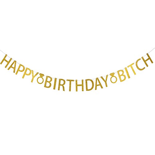 -. Title : Happy Birthday Bitch ,Gold Glitter Party Banner, Decorations Supplies