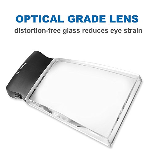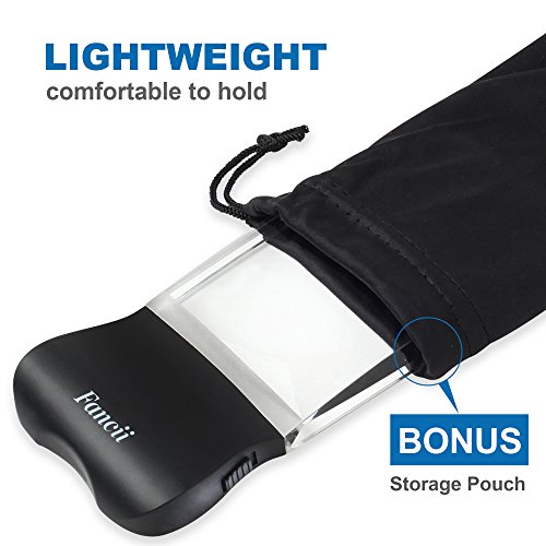 Fancii LED Light 2X Large Rectangular Handheld Reading Magnifying Glass, 2.3" X 4" Rimless Distortion-Free Magnifier Lens