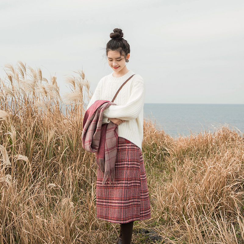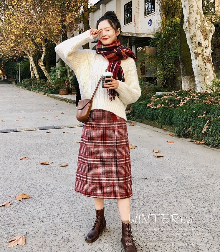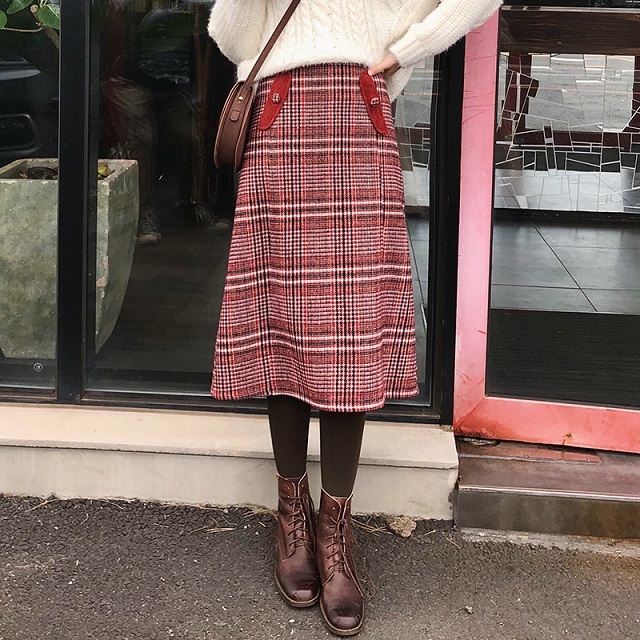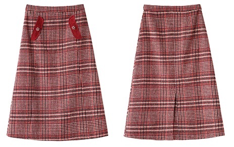 目を惹くレッドカラーのチェック柄とポケットディテールが女の子らしい印象。