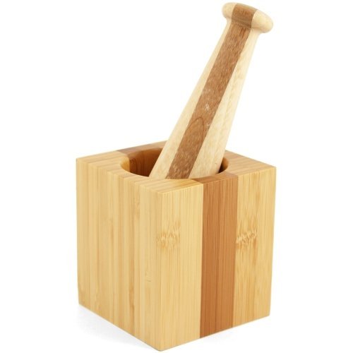 -. Title : Natural Bamboo Two Tone Square Mortar & Pestle