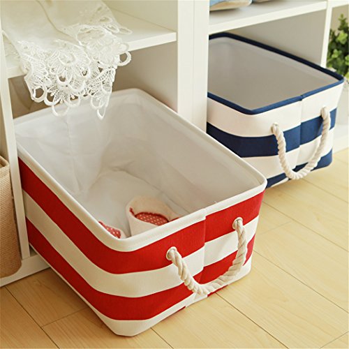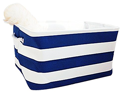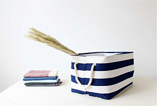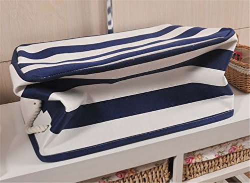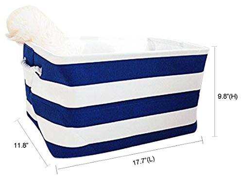 PUTING Space Saver Folding Laundry Hamper Waterproof Canvas Double Fabric Storage Bin Storage Basket Organizer for Bathroom Storage & Closet Home Organization, Blue Stripes 17.7"x 11.8"x 9.8"
