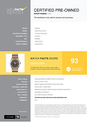 -. Feature : Omega Constellation 123.55.27.60.63.002 with brown dial / Authenticated by WatchFacts. Grade Rating: 93 / Condition: Excellent / Comes with original box and manufacturer's papers offered with this watch / Quartz movement / Watch year: 2000